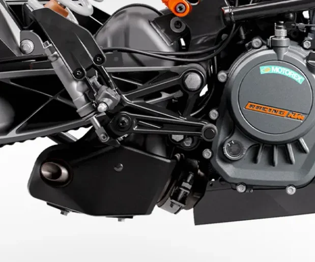 Just like the KTM 1290 SUPER DUKE R, the four valves in the cylinder head of the KTM 125 DUKE are actuated by two overhead camshafts and ultra-hard, carbon coated cam followers. The result is an ultra-reliable, long-lasting engine that produces next-level power.