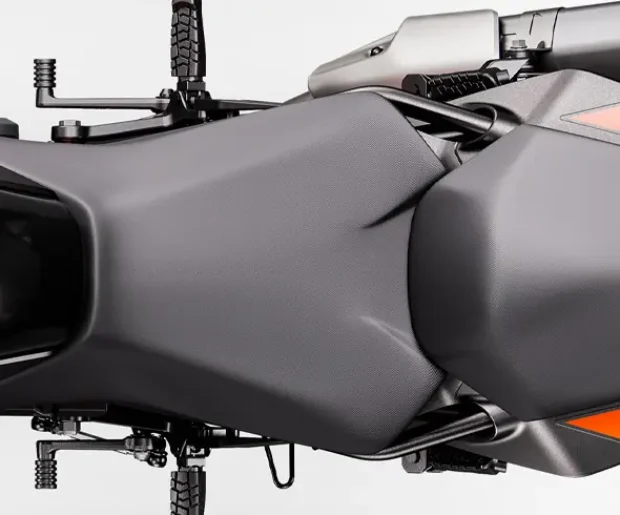 The two-part seat offers first class sport riding ergonomics with maximum support for both rider and pillion.