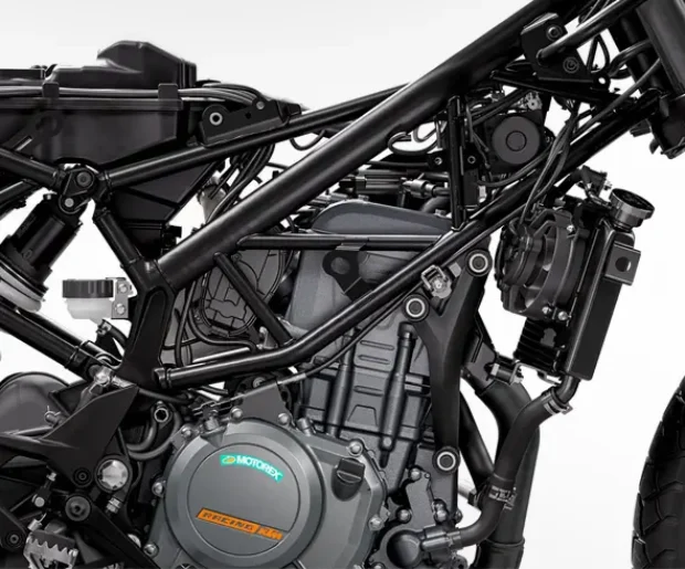 A state-of-the-art, liquid cooled, light weight, compact 373 cc engine powers this agile machine. It is responsible for the outstanding power and together with a balancer shaft, deliver the highest levels of smoothness.